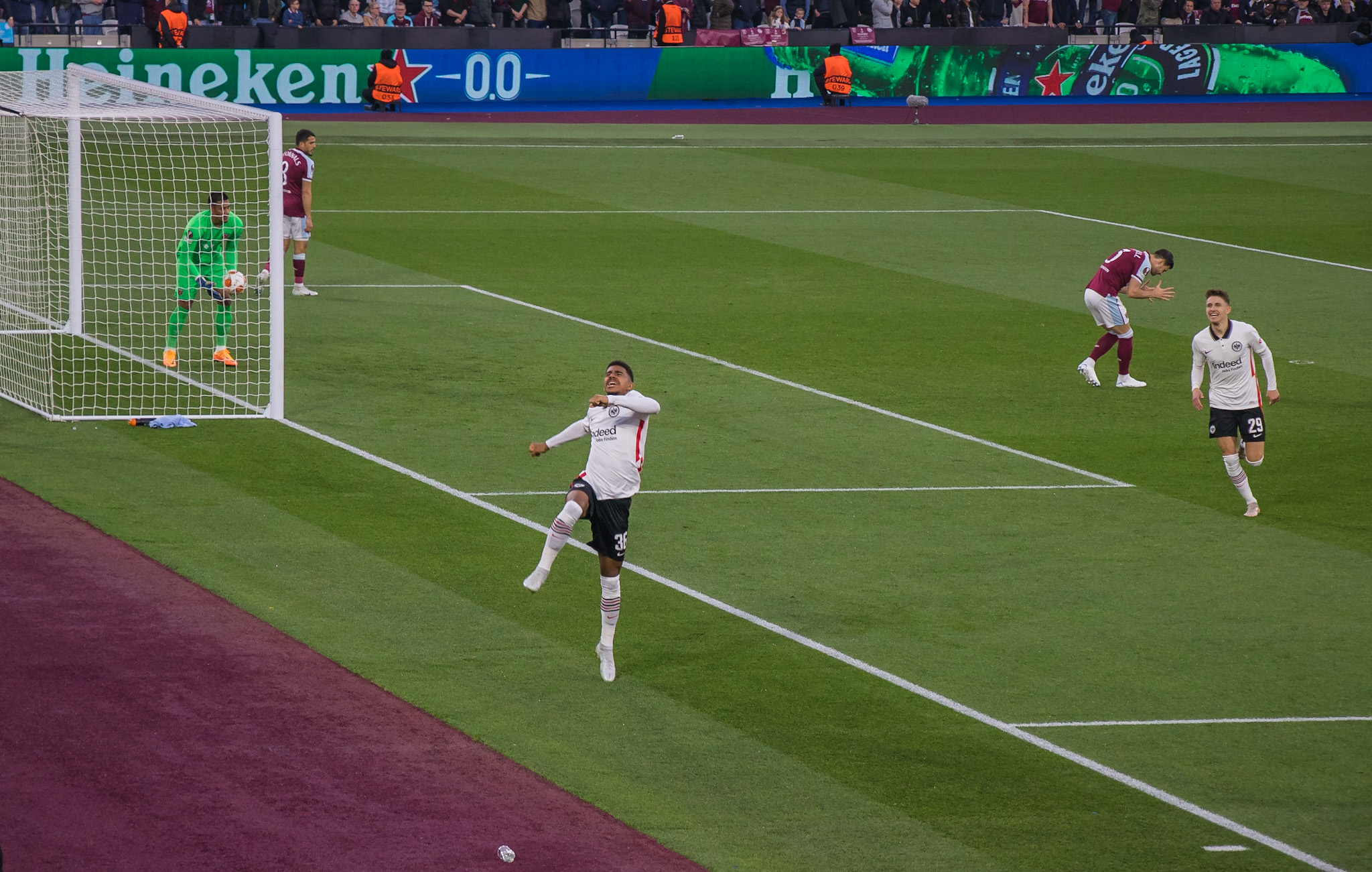 Frankfurt had the perfect start by taking the lead within the opening minute when the young Ansgar Knauff broke into the area to provide a sucker punch that the Hammers struggled to shake off. Indeed, Knauff was a constant threat and could have doubled Frankfurts lead, being in form from previous rounds by scoring in away games against Real Betis and Barcelona.