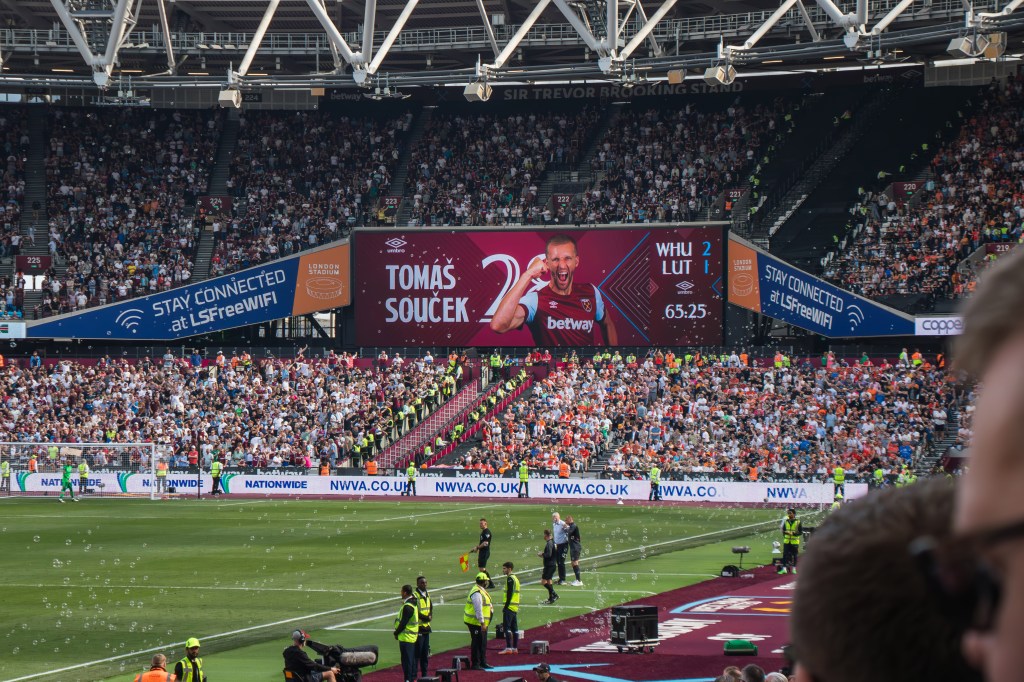 The crowd continue to celebrate as the match restarts and it wasn’t long before we go ahead from a Tomas Soucek’s brilliantly taken first time volley on 65mins.