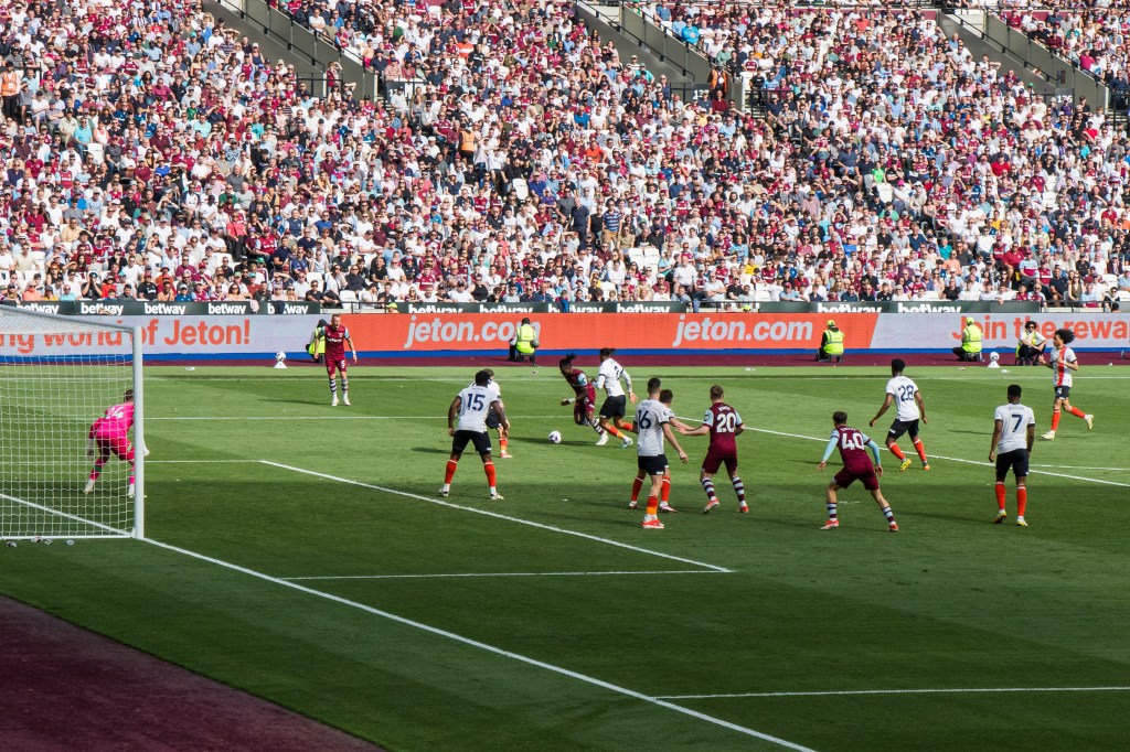 I love capturing the different emotions and reactions of the crowd, and after Kudus missed shot this is a great capture of a fan holding his head whilst Mohammed lays flat out on the pitch after missing his shot.