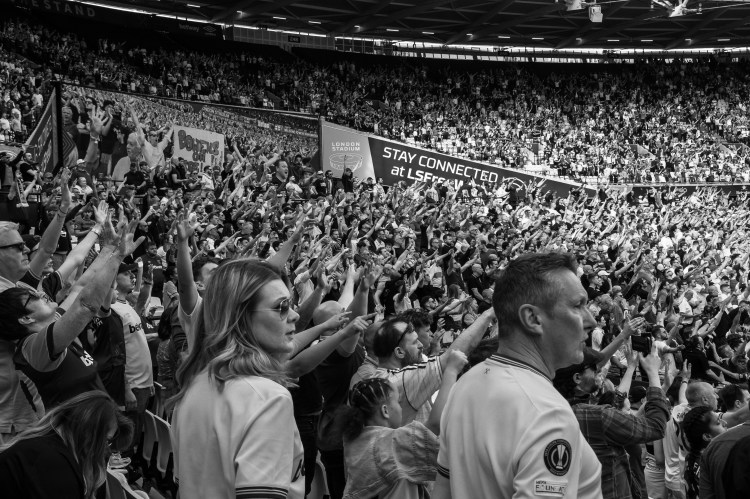 There are often arms covering faces but that’s part of the experience I am trying to capture – being in the crowd and not looking in from the outside. It’s a unique viewpoint and a challenge to capture that passion and celebration.