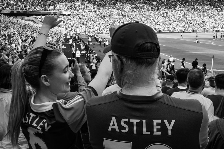 It’s personal, the experience of being at the match, soaking up the atmosphere and getting pulled along with the waves of passion and voices of the fans filling the ground. Capturing those more personal moments is a joy and I love this photo of what seems to be a father and daughter together.