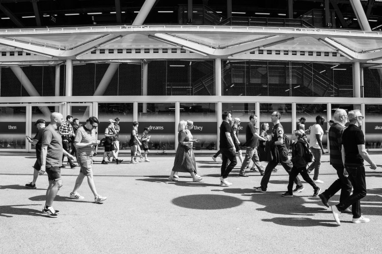 With the summer sun finally clearing the skies the stadium comes in to view through the trees on my way to the match, and I soak up the crowd scanning around for some interesting shots.