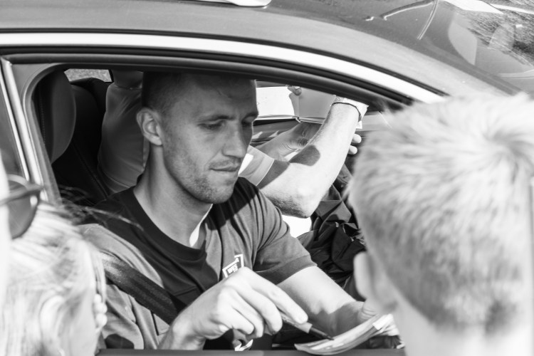 Most players drive on, but Soucek tends to stop and sign autographs and I managed to get a shot of him. It’s a bit of a crush at times, everyone trying to get a selfie and autograph and I’m just holding my camera up and snapping away hoping for a decent image.