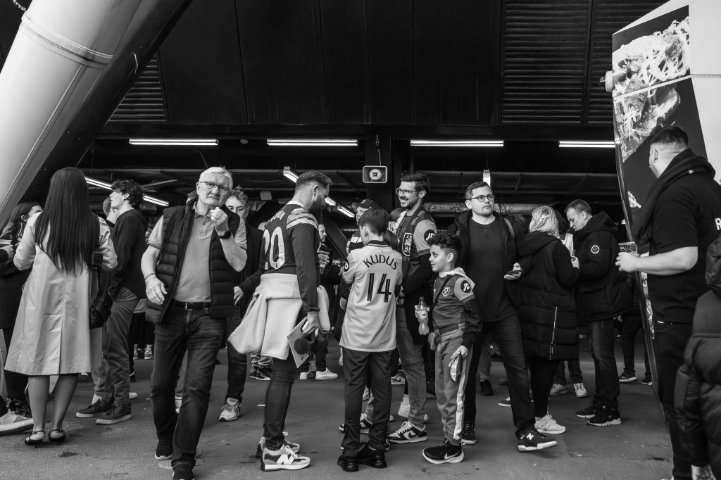 Walking through the Olympic Park towards the stadium, we can see it through the trees and then we made our way up towards the bridge that leads to our turnstile A. Fans had turned up for this match, and who wouldn’t? It was clearly very busy as we arrived at the stadium to queue up for the security checks. Fortunately, going through security was a breeze, a quick scan front and back and we were soon wandering around the outside of the ground as I looked for interesting shots to capture.