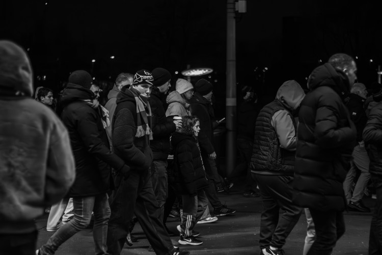 We made our way down towards the stadium. I was extra excited as well because I was using my new Canon EOS 7D Mark II with my nifty 50mm lens. A wonderful fan Greg, who sits in the row in front of me, sold it to me before Christmas and this was the first time I’d really taken it for a spin. My wife bought it for me for an anniversary present and I’d been desperate to really see what it can do.
