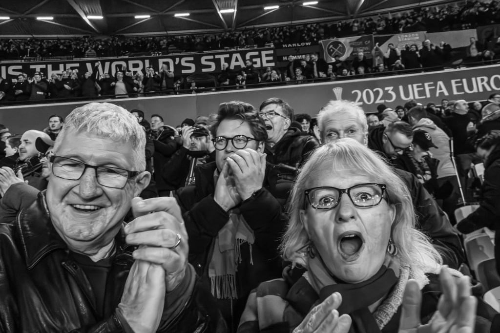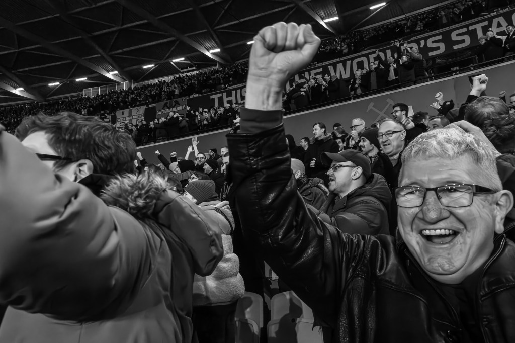 And we didn’t have to wait long for the first goal as Carlos Soler collected a loose ball to curl his shot home. 1-0 the the Hammers. Now we could celebrate as we watched the players turn the game on its head in a frantic few minutes.