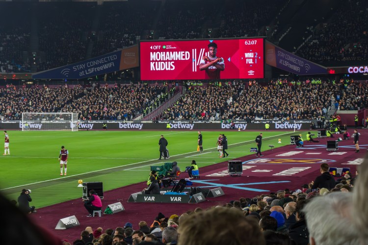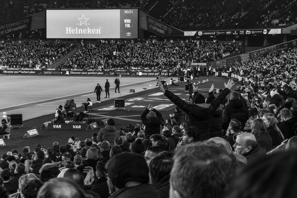 Kudus had the ball in the net but fans anxiously waited for the VAR review for potential offside, which was confirmed but we could see there was something different about the team and the crowd continued to urge the players forward.
