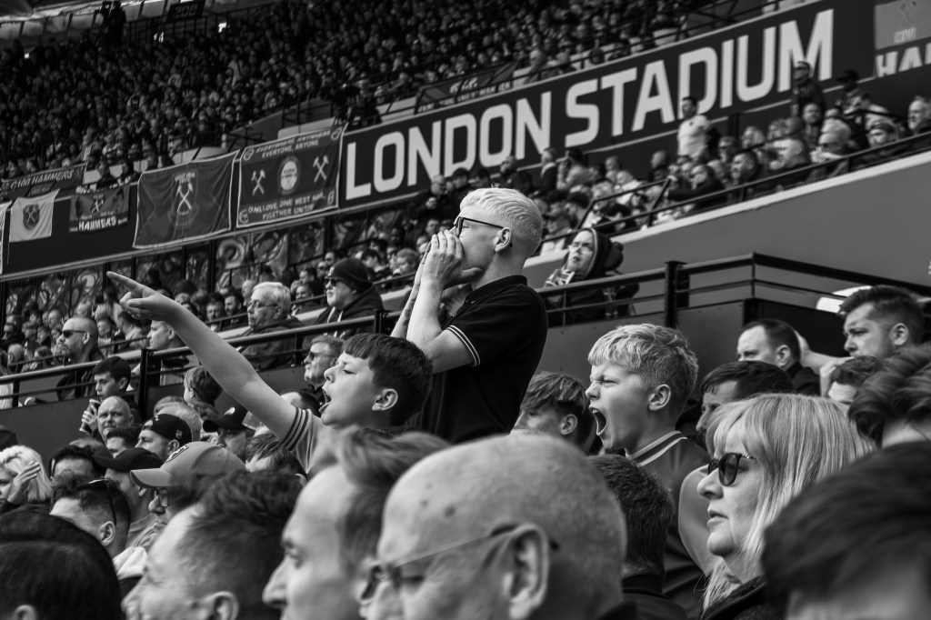 I was there for what seemed like forever and the Carlos Soler, who came on for Soucek on 80mins, stops to sign shirts and programmes and have a few photos taken with young fans. My camera battery died on me and instead of grabbing a replacement I just open my phone camera and hope for the best. A bit of improvisation but I’m quite happy with this shot. These shots are a little tricky as I don’t want to stop fans getting their autographs and photos, but I do try and get a decent shot and often have to hold my camera or phone up and hope I’ve got the right angle.