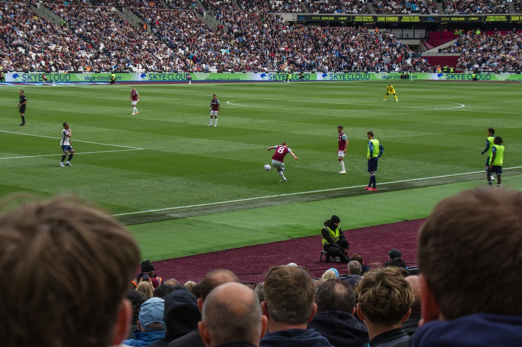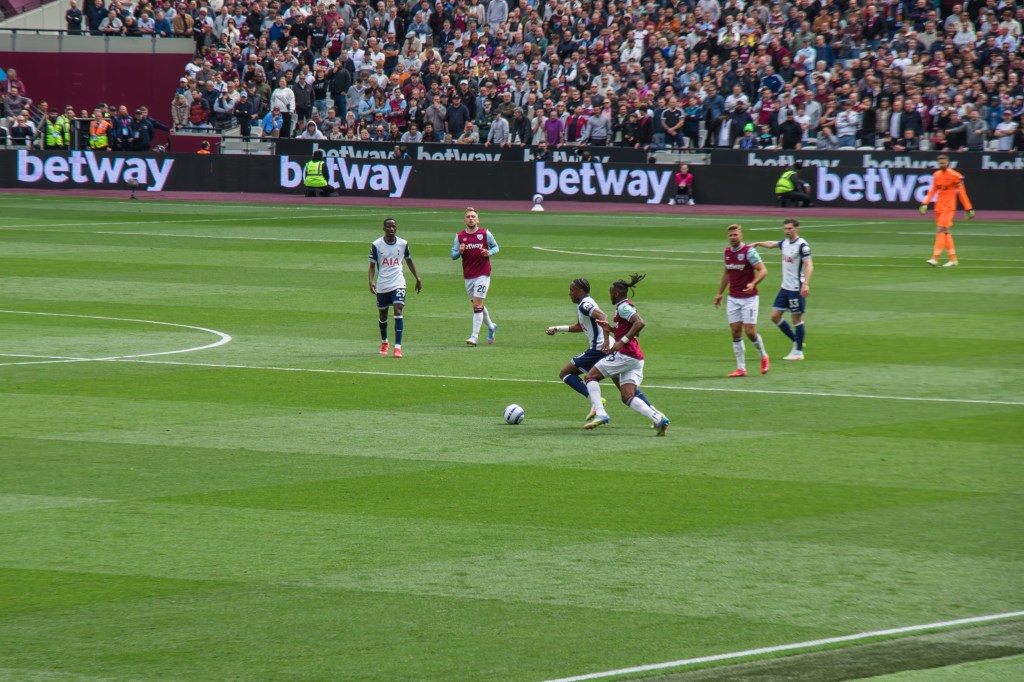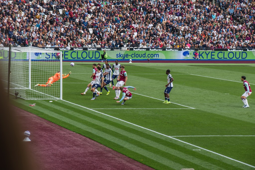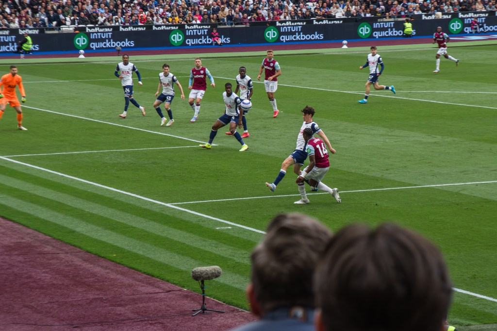Kudus was another stand out player, if you can say that of anyone in this game, with his probing forward on the left wing and whipping some balls into the Spurs area. I’m impressed with how Fullkrug is able to get up for crosses and he manages to get his head on this forcing a save out of Vicario, and the attacking move deserves applause from the crowd.