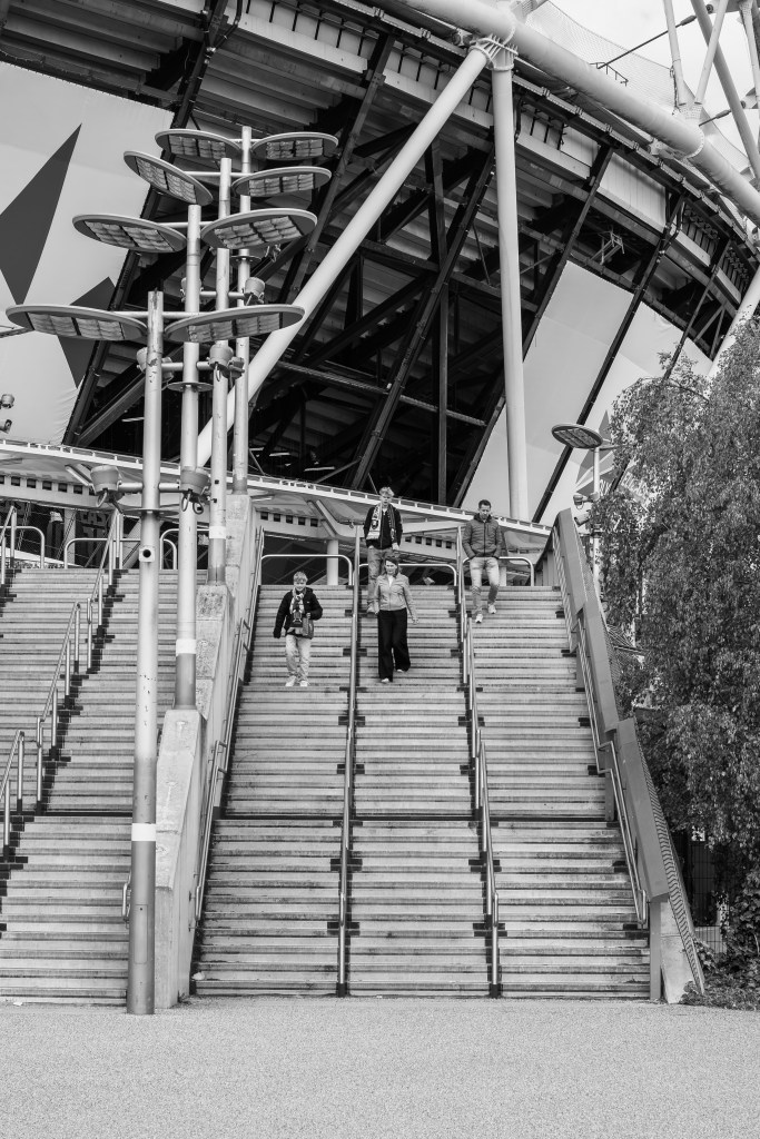 I decided to make my way to see if any of the players will stop for the waiting fans. I turn and look up at the stadium and capture fans making their way down the steps.