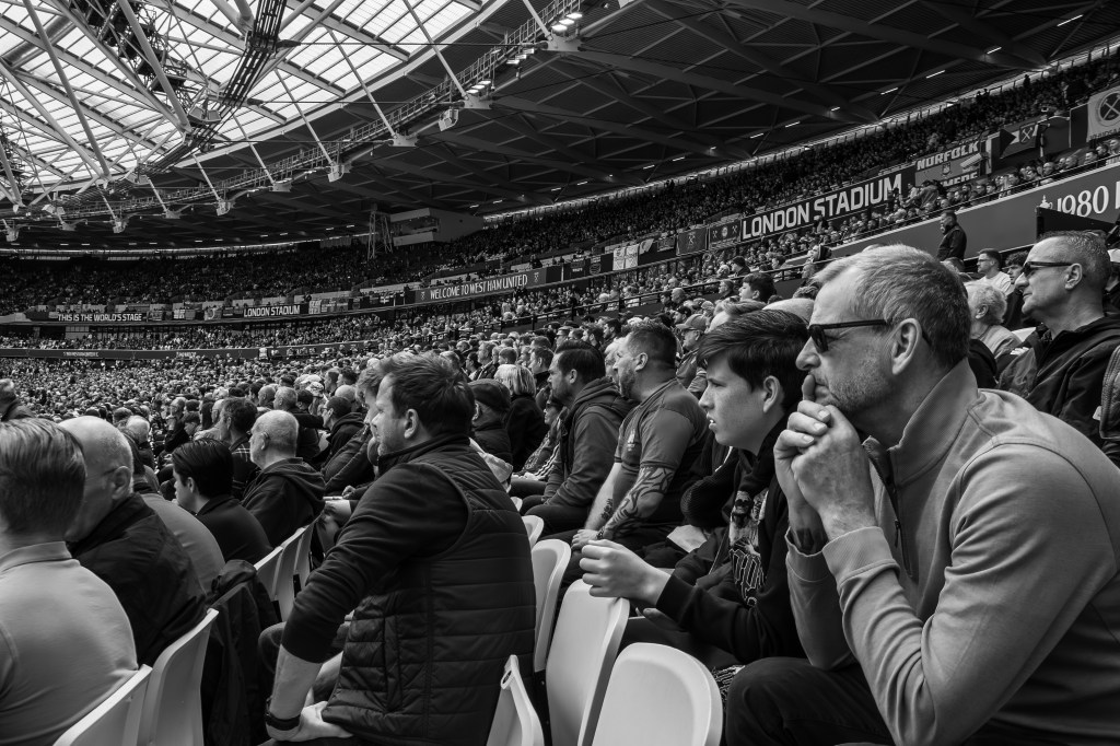 It felt like being punched in the face, and I can sympathise with this fans expression …. ‘Why do we put ourselves through this?’ A lovely shot of this dad with his daughter on his shoulders, but their expressions. It tells a story for sure.