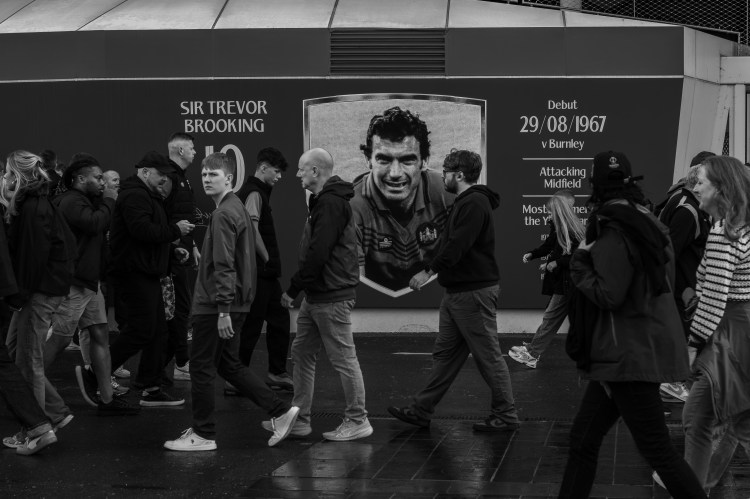 They have changed some of the murals around the perimeter wall of the stadium and I tried to get a shot of Sir Trevor looking at the fans walking past.