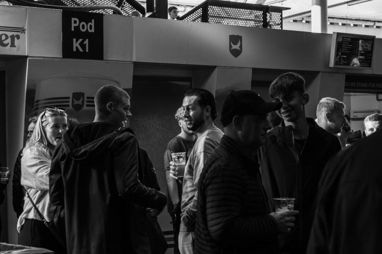 Walking through the concourse and in and out of groups of fans chatting away before they make their way to the stands. I want to capture the relaxed atmosphere here as if you’re there in the moment.