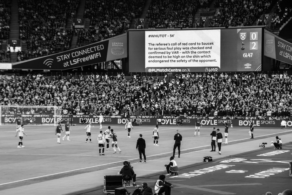 The second half was barely 10mins old and we found ourselves 0-1 down and then Tomas Soucek goes in heavy in a tackle on Joao Palhinha and the ref had little option by to show the Czech international a red card. Now we knew the game was lost, not because losing Soucek as much as seeing how the players heads went down, with what little fight they had suddenly gone. The atmosphere was very different now that’s for sure.