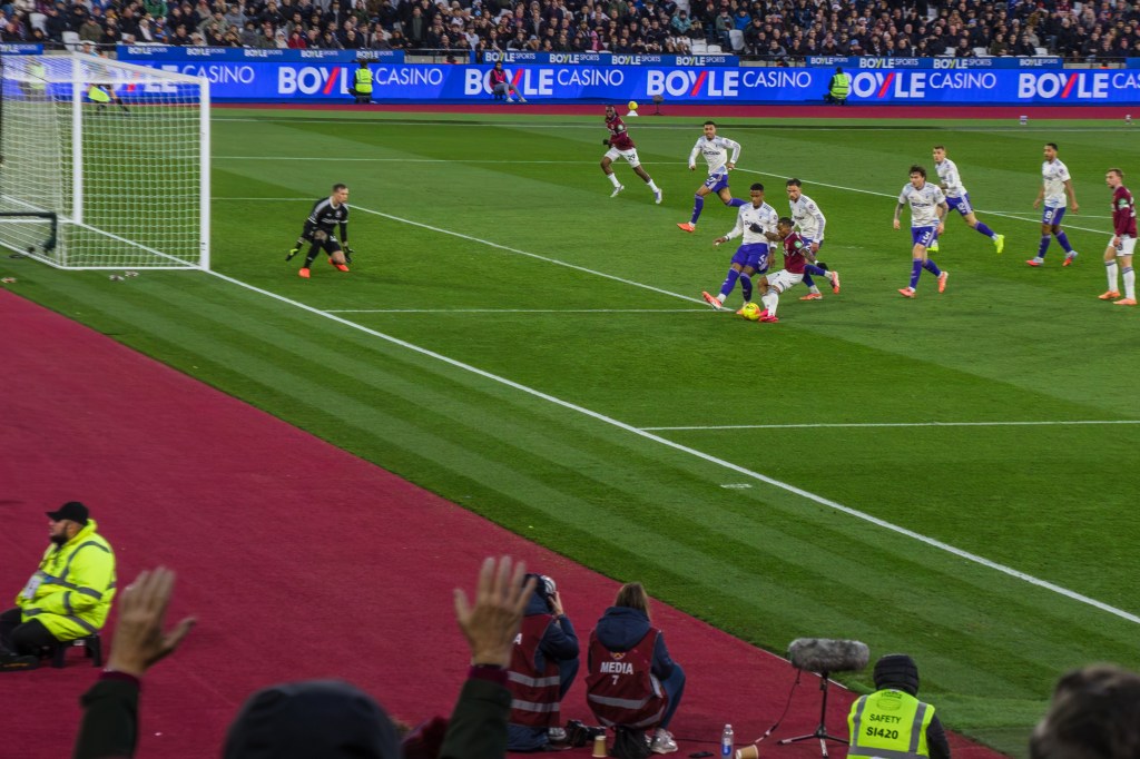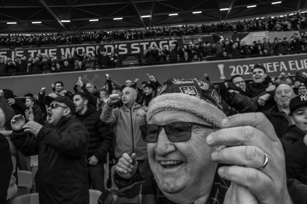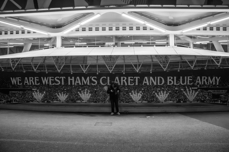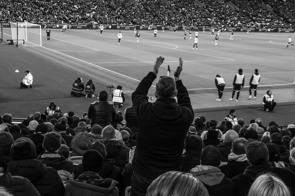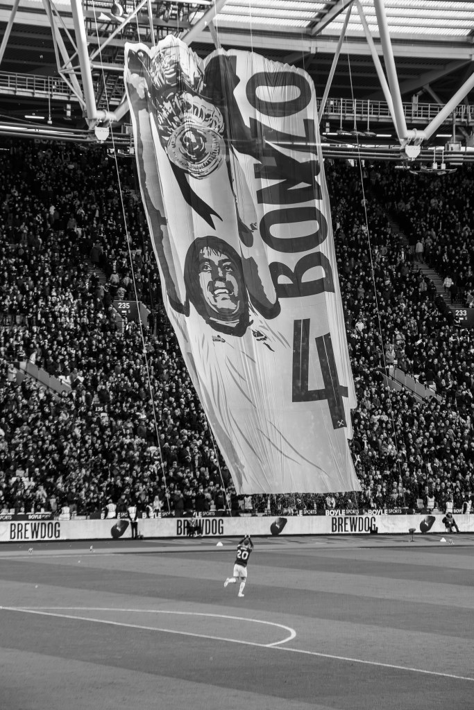 The banner of Bonzo unfurled with him holding the FA Cup aloft, overshadowing the Billy Bonds stand, I captured Bowen clapping the fans as we counted down to the start of the match.