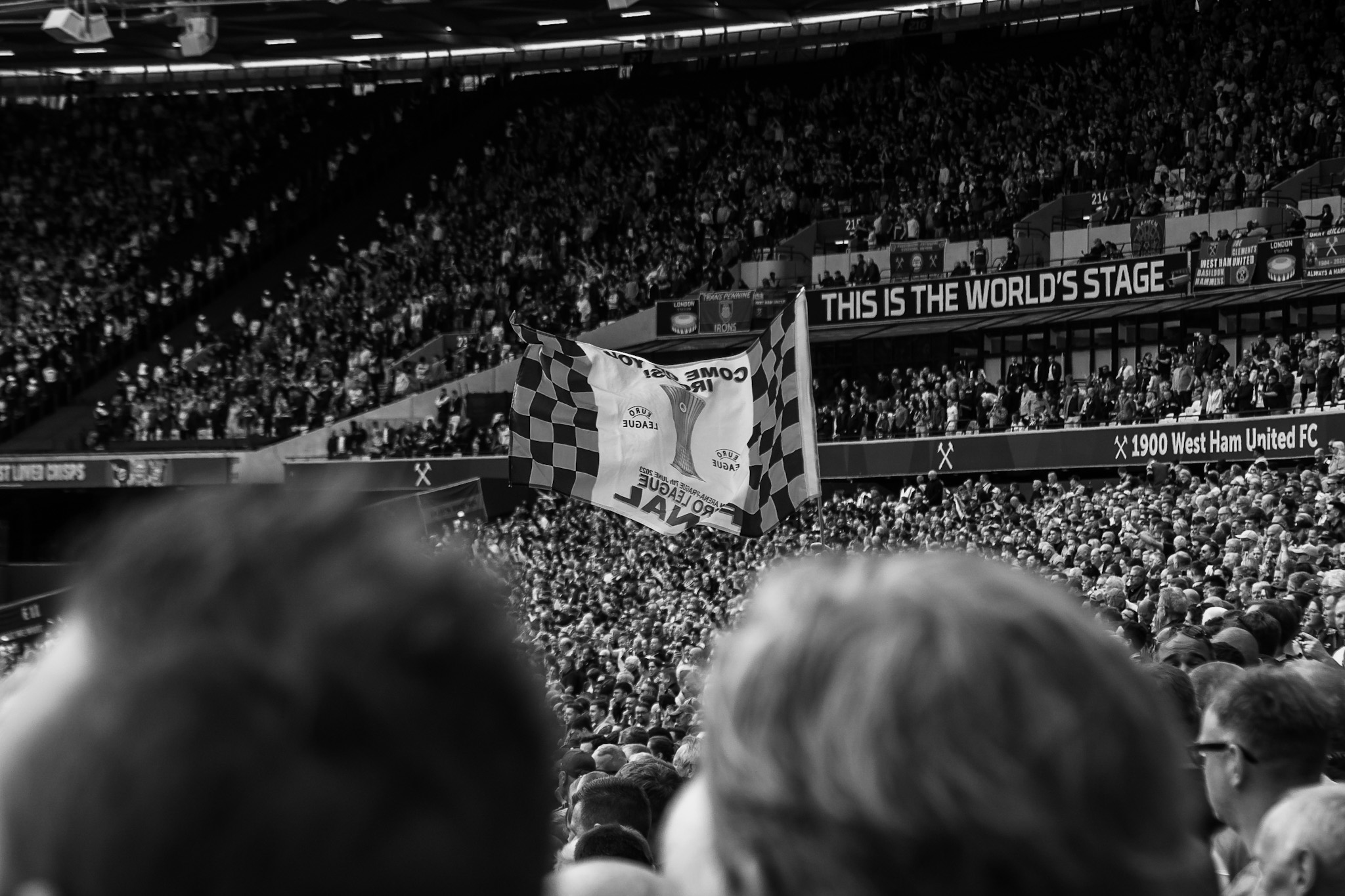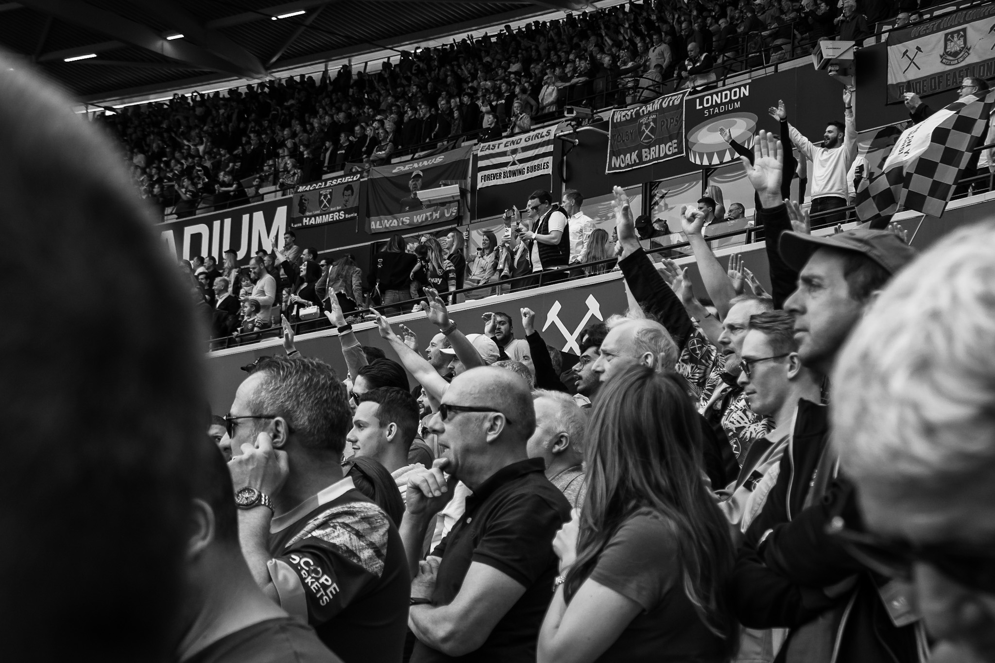 I scan around the stands for anything interesting to capture and find these guys looking over the stands with their flag unfurled stating their claim to be proper Eastenders.