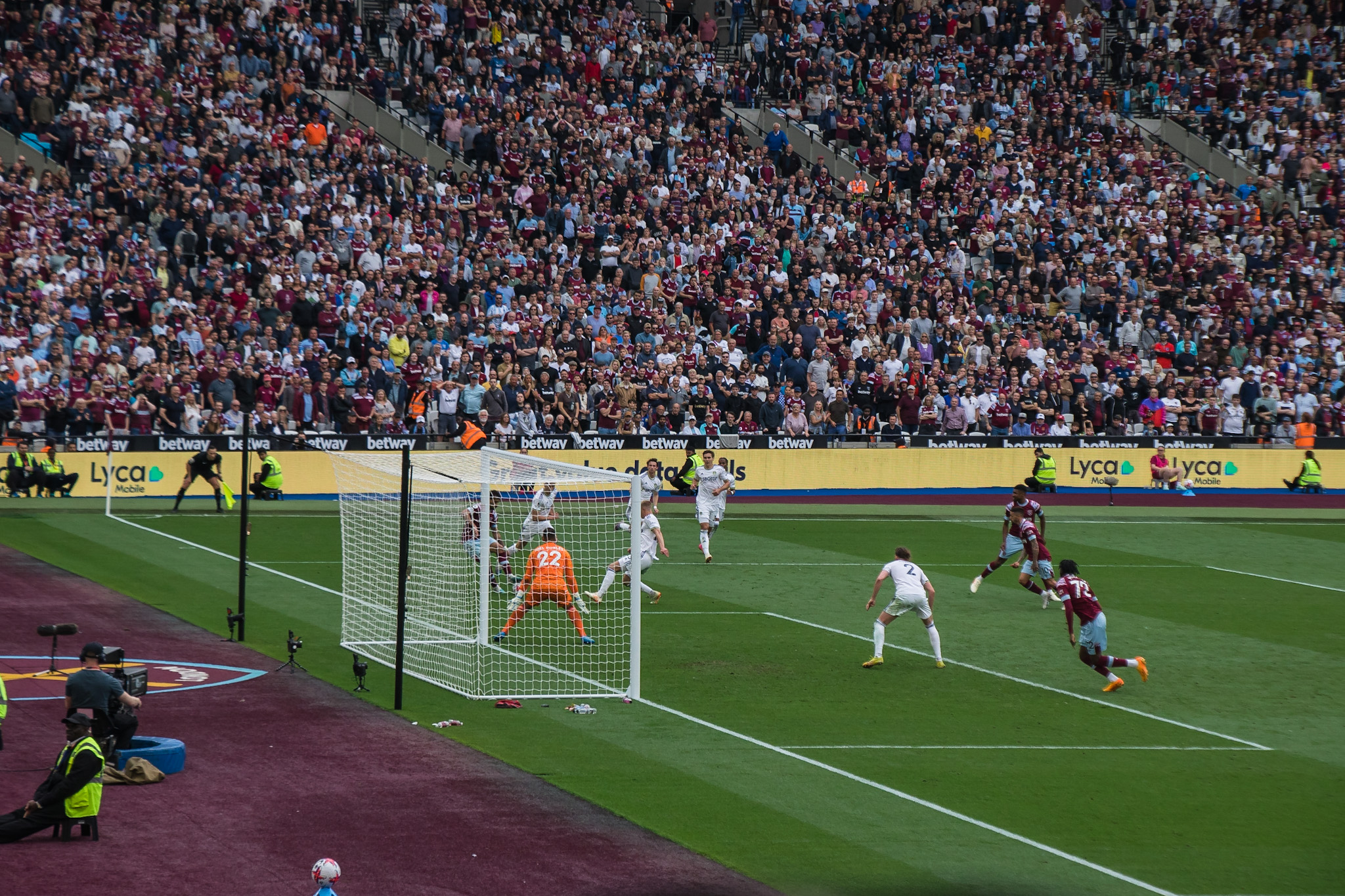 I love capturing the different emotions and reactions of the crowd, and after Kudus missed shot this is a great capture of a fan holding his head whilst Mohammed lays flat out on the pitch after missing his shot.