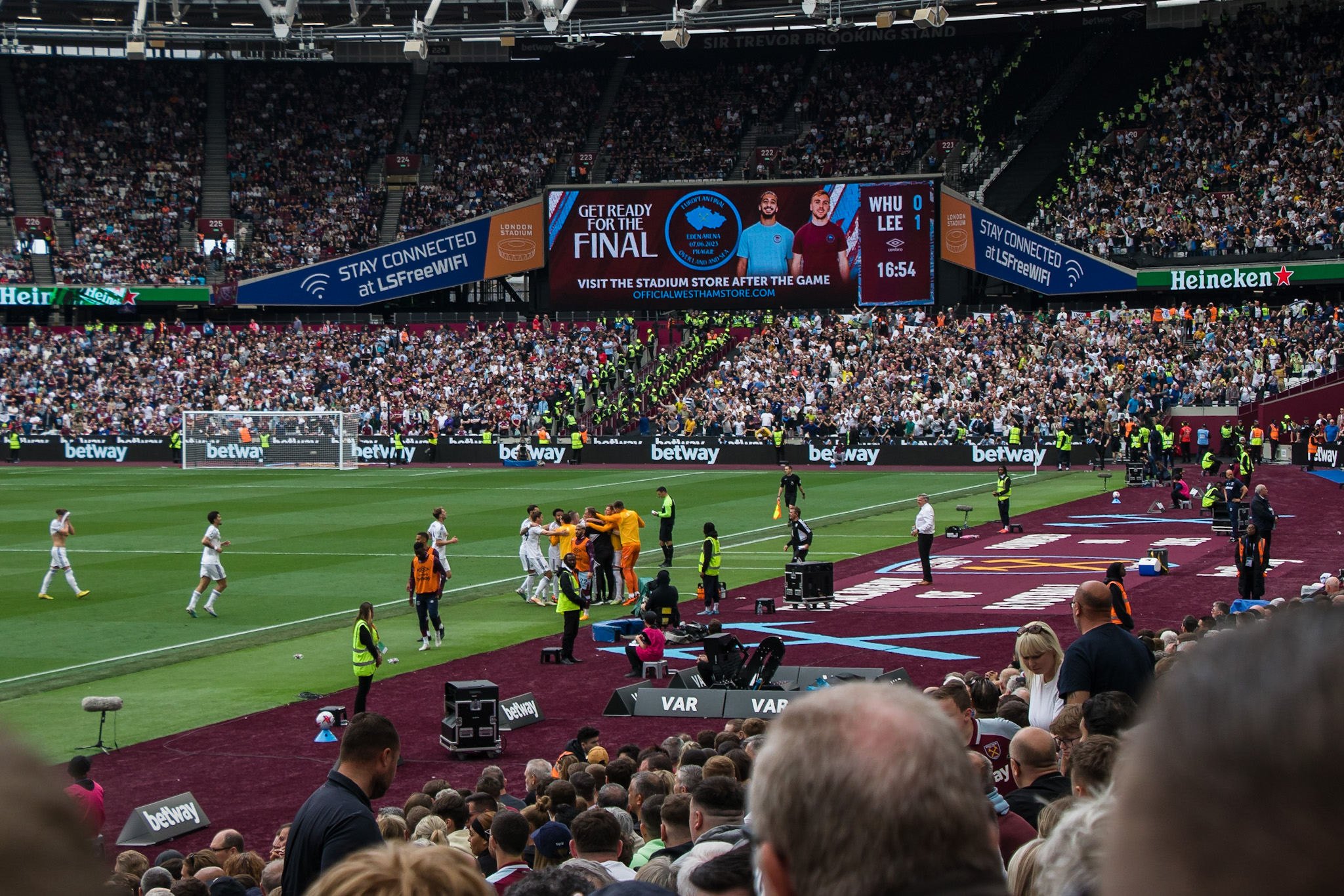 The crowd continue to celebrate as the match restarts and it wasn’t long before we go ahead from a Tomas Soucek’s brilliantly taken first time volley on 65mins.