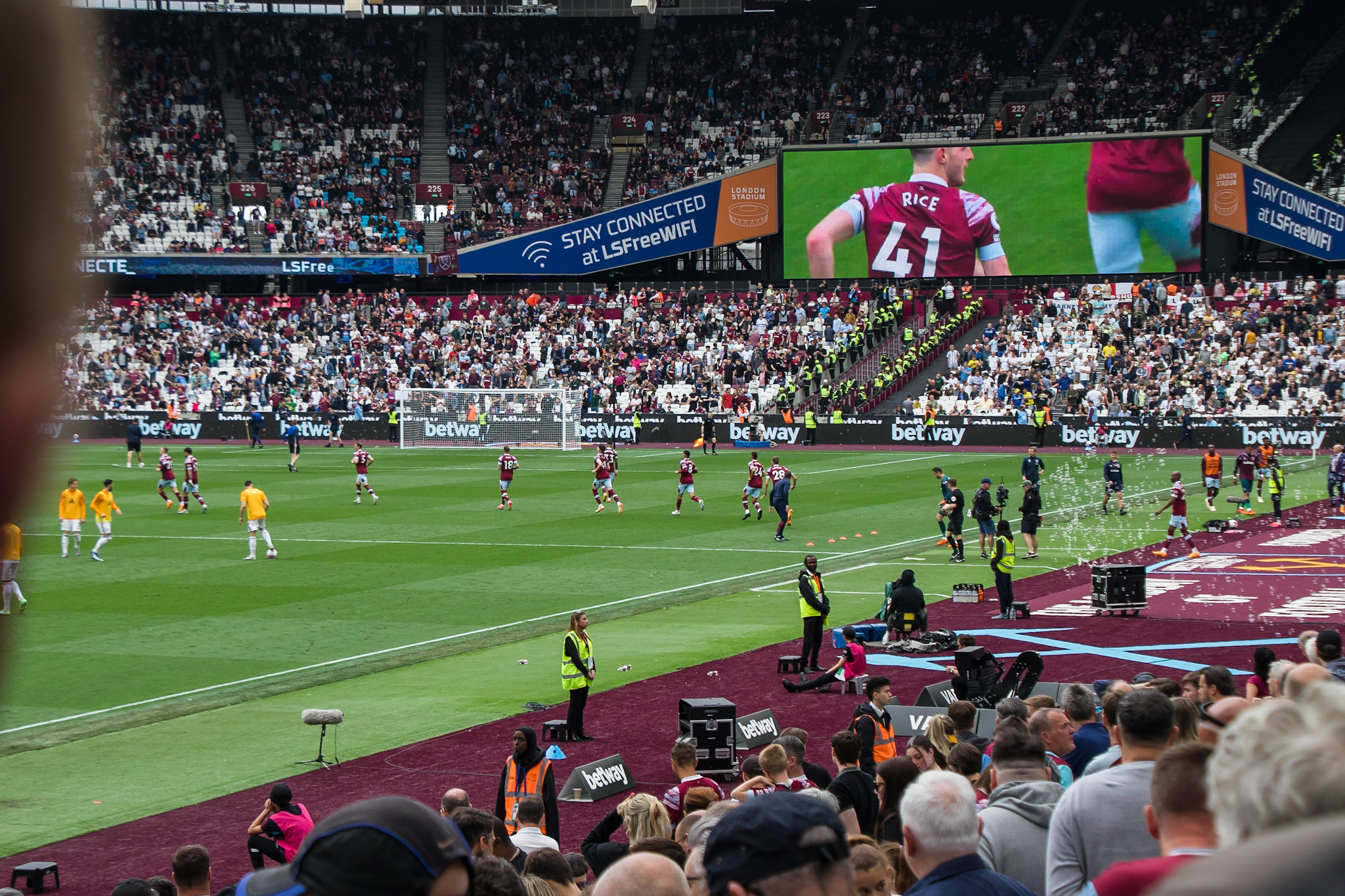 For much of the game it played out like a friendly, in the first half we had goals from Bowen and Paqueta, with Mihailo pulling one back before half time. During each half the game paused for a water break that gave the teams and the managers a chance to regroup and adjust the game plan whilst taking a break.