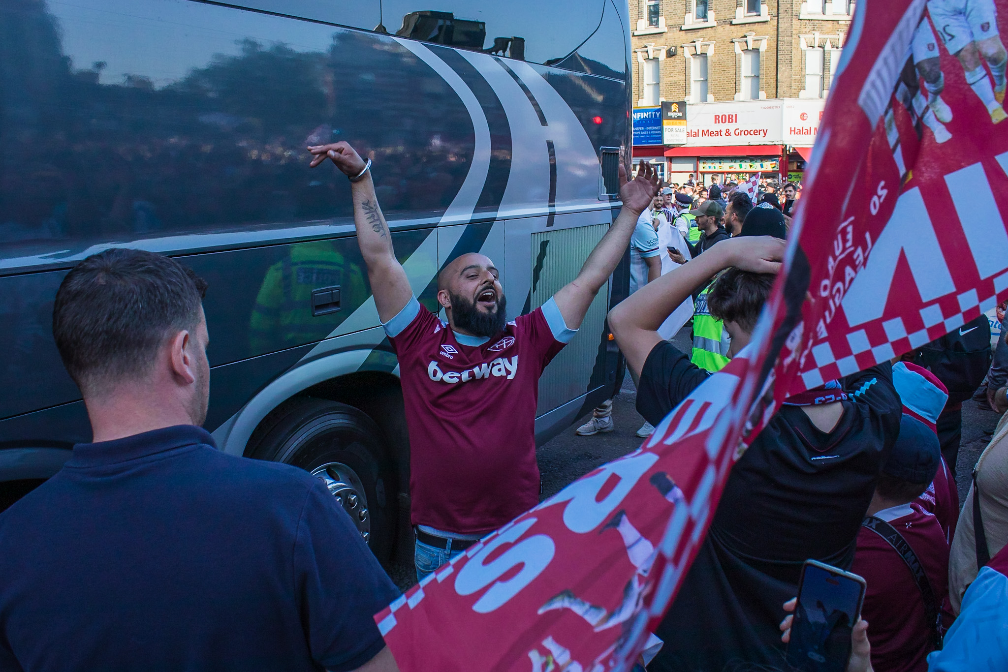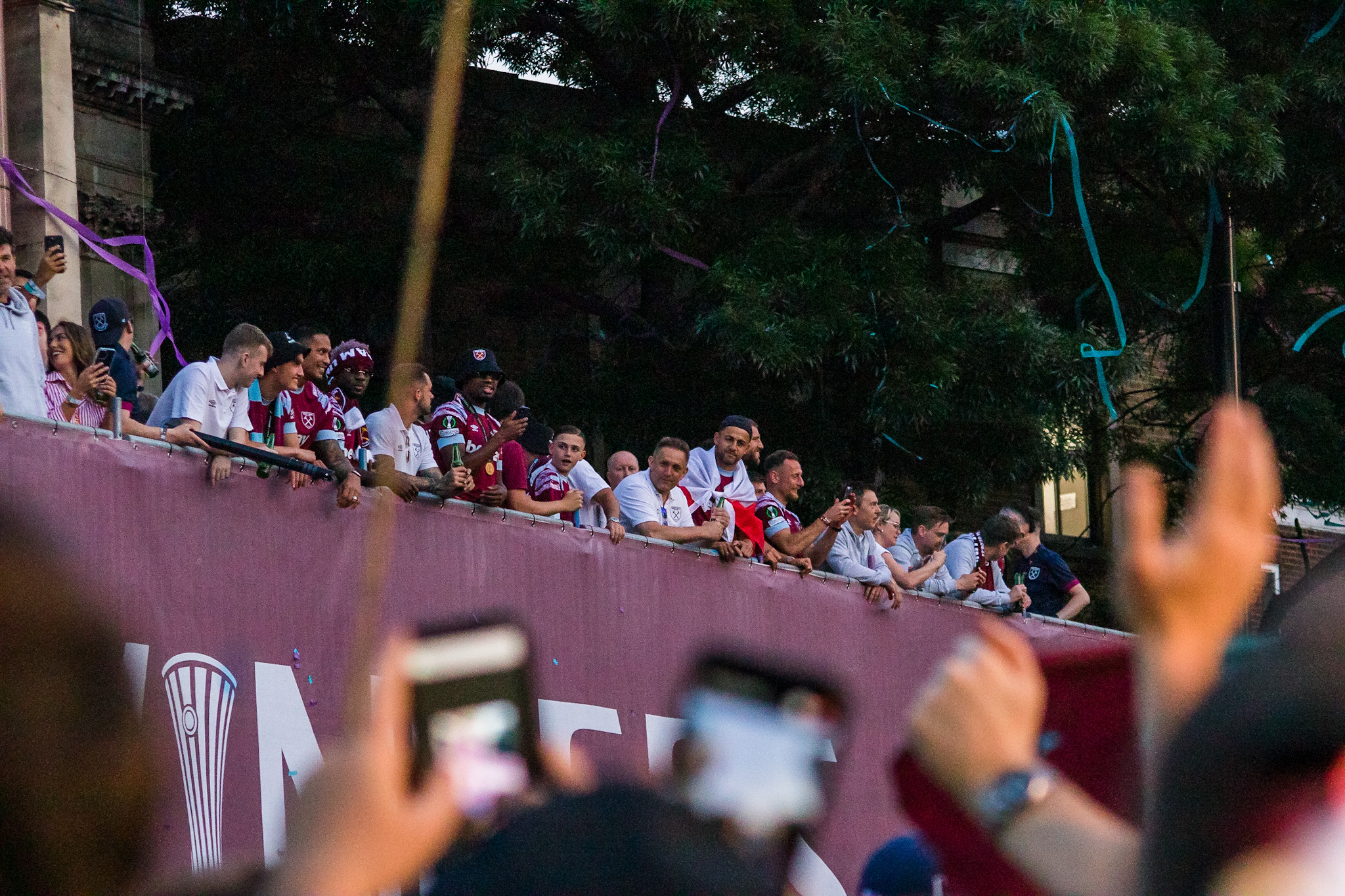 The party continued as the buses moved slowly towards Stratford Town Hall where yet more fans waited desperately to see the players and the trophy and scream ‘West Ham Are Massive Wherever We Go!’