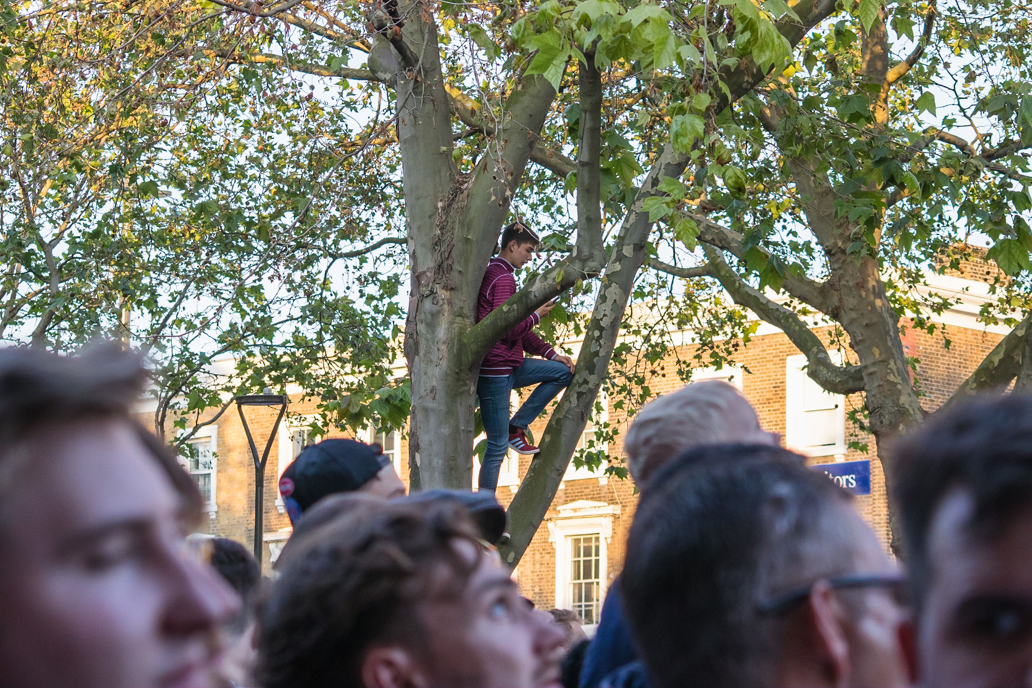 With the summer sun finally clearing the skies the stadium comes in to view through the trees on my way to the match, and I soak up the crowd scanning around for some interesting shots.