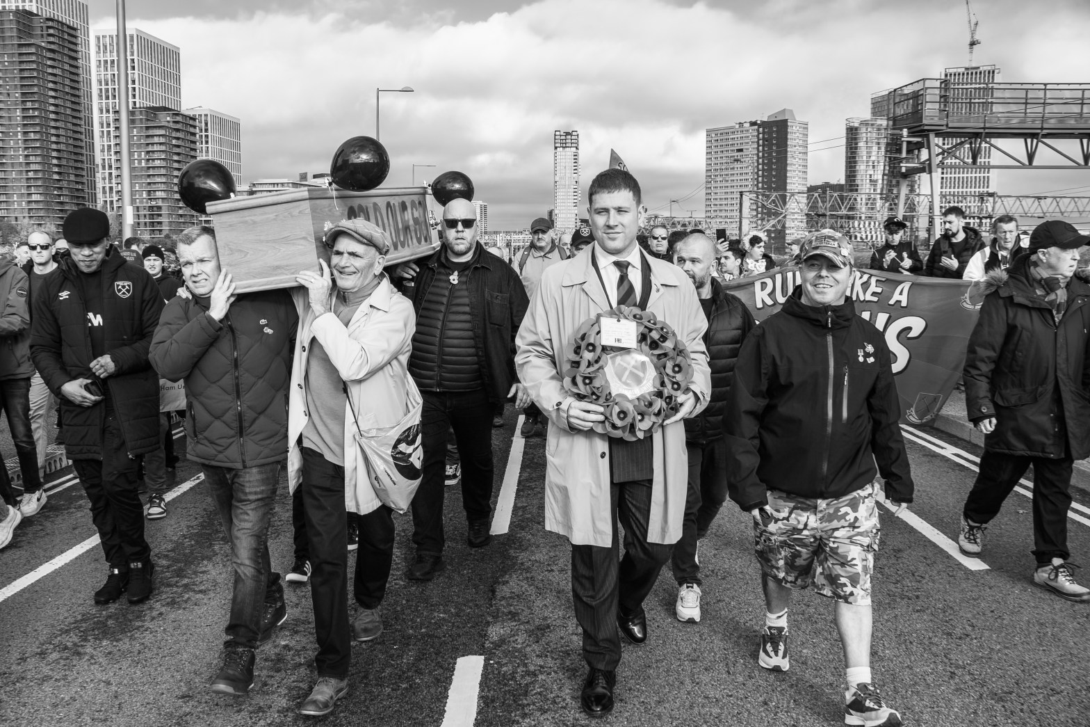 The fans protest before the Burnley game is starting to have some traction and receiving a higher profile across media sites. The numbers of fans who gathered and then walked, singing and chanting from Stratford High Street to London Stadium behind a coffin with the words ‘SOLD OUR SOUL’ painted on the side provided a powerful image to focus our anger at how our club has been run by the owners since they took over in January 2010 when they acquired a 50% stake in the club.